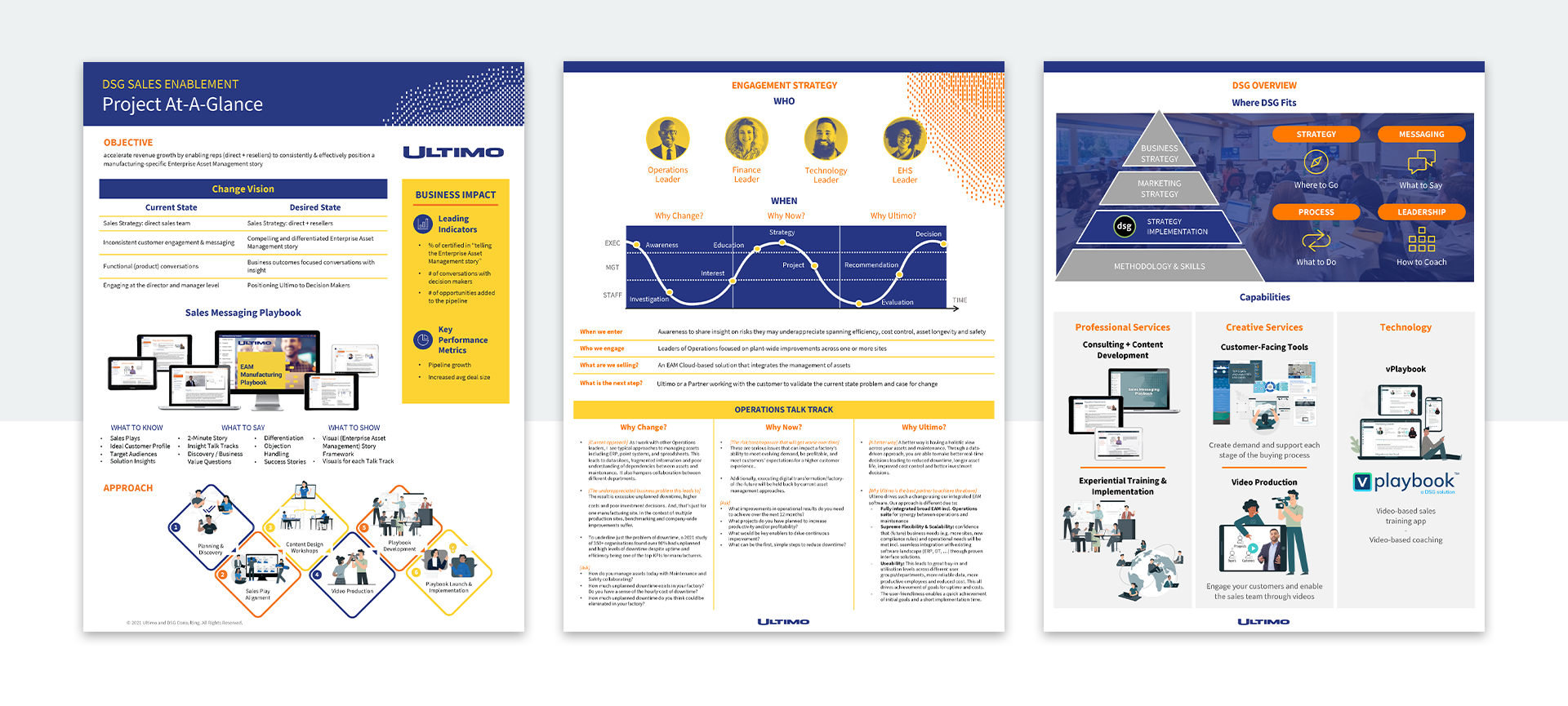 Coaching Ebook, Fastly and DSG Vertical Selling Presentation,Training Industry Leader Talk Presentation, Ultimo Project Proposal At a Glance, and Remote Video Capture Ebook