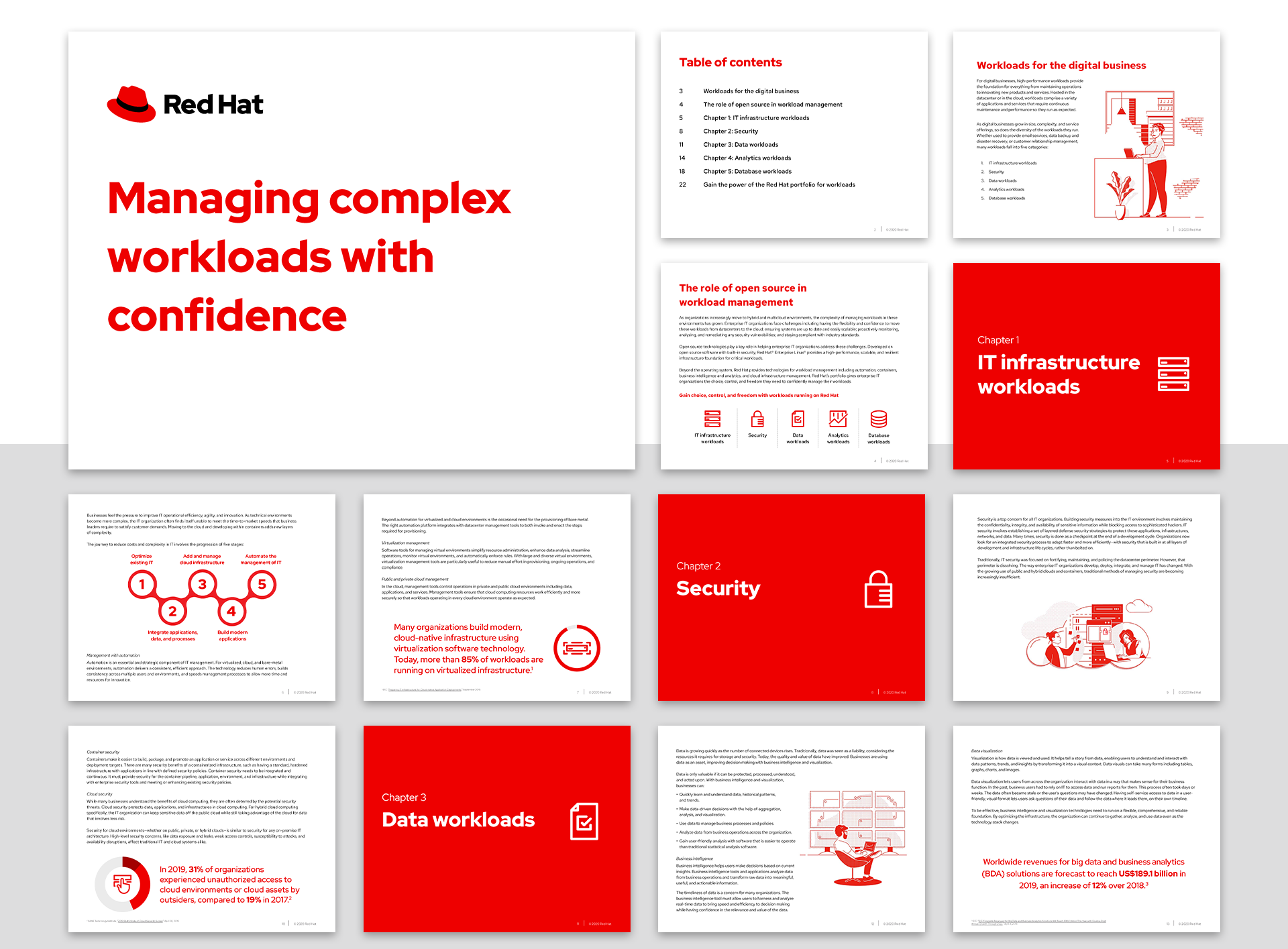 Workloads Ebook, Workloads Case Study Infographics, Compete Talk Tracks Visuals, and Red Hat OpenShift and Microsoft Azure Infographic